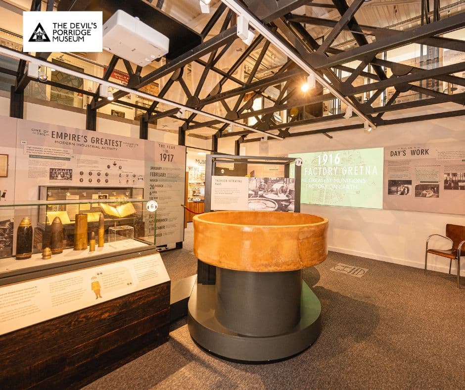 魔鬼粥博物馆讲述的是英国皇家军工厂格雷特纳工厂的故事,这是第一次世界大战期间地球上最伟大的军工厂,魔鬼粥(即炸药)就是在这里混合的。当时有 30,000 名工人:其中有 12 000 名妇女。她们为战争做出的贡献帮助妇女获得了选举权。 我们屡获殊荣的五星级先进博物馆是邓弗里斯和加洛韦最值得一去的地方之一。 在学校假期等繁忙时期,请致电咨询是否需要预约参观。
